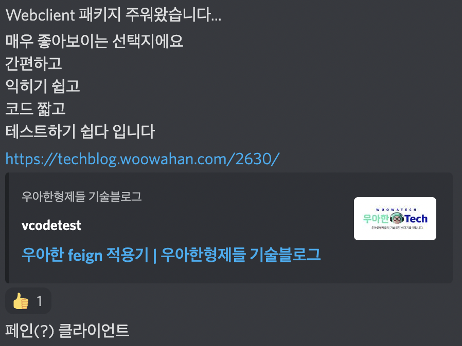 그러던 중 쿠킴의 소개로 Feign Client의 존재를 알게 되었다.