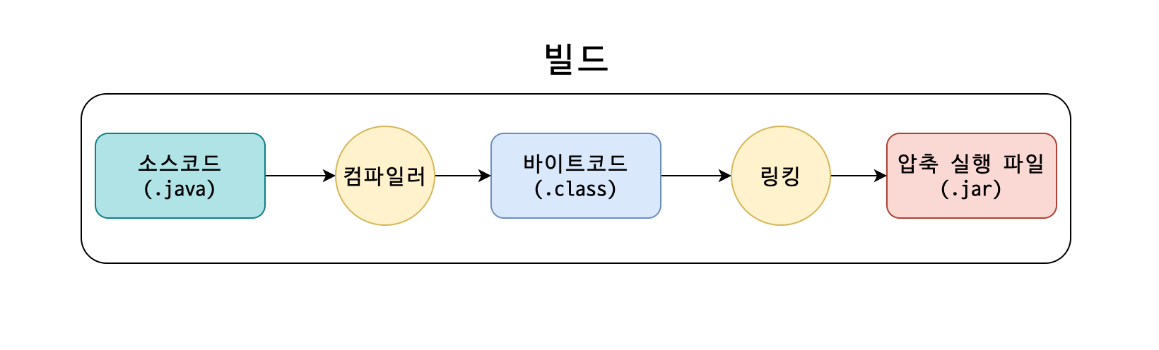 - 링킹 : 바이트코드를 의존하고 있는 라이브러리들과 함께 하나의 파일로 압축하는 과정
