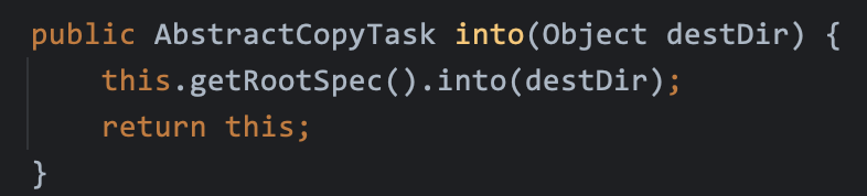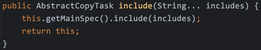 2. AbstractCopyTask 추상 클래스의 from, into, include 메서드를 사용해서 경로를 지정해줍니다.