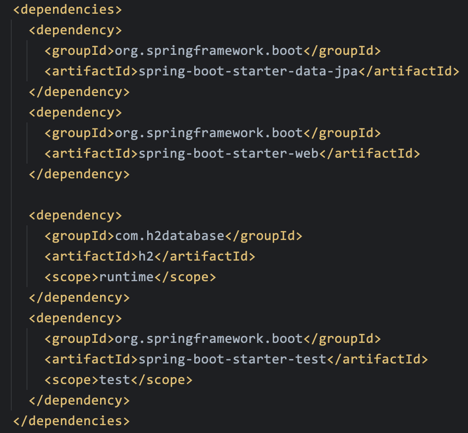 - 프로젝트에서 필요한 의존성들을 작성하는 블록입니다.