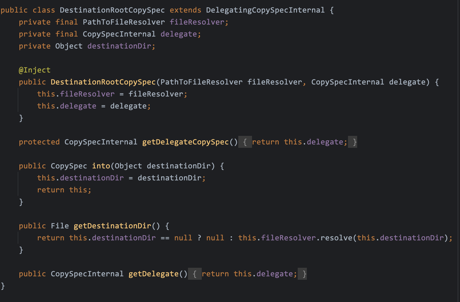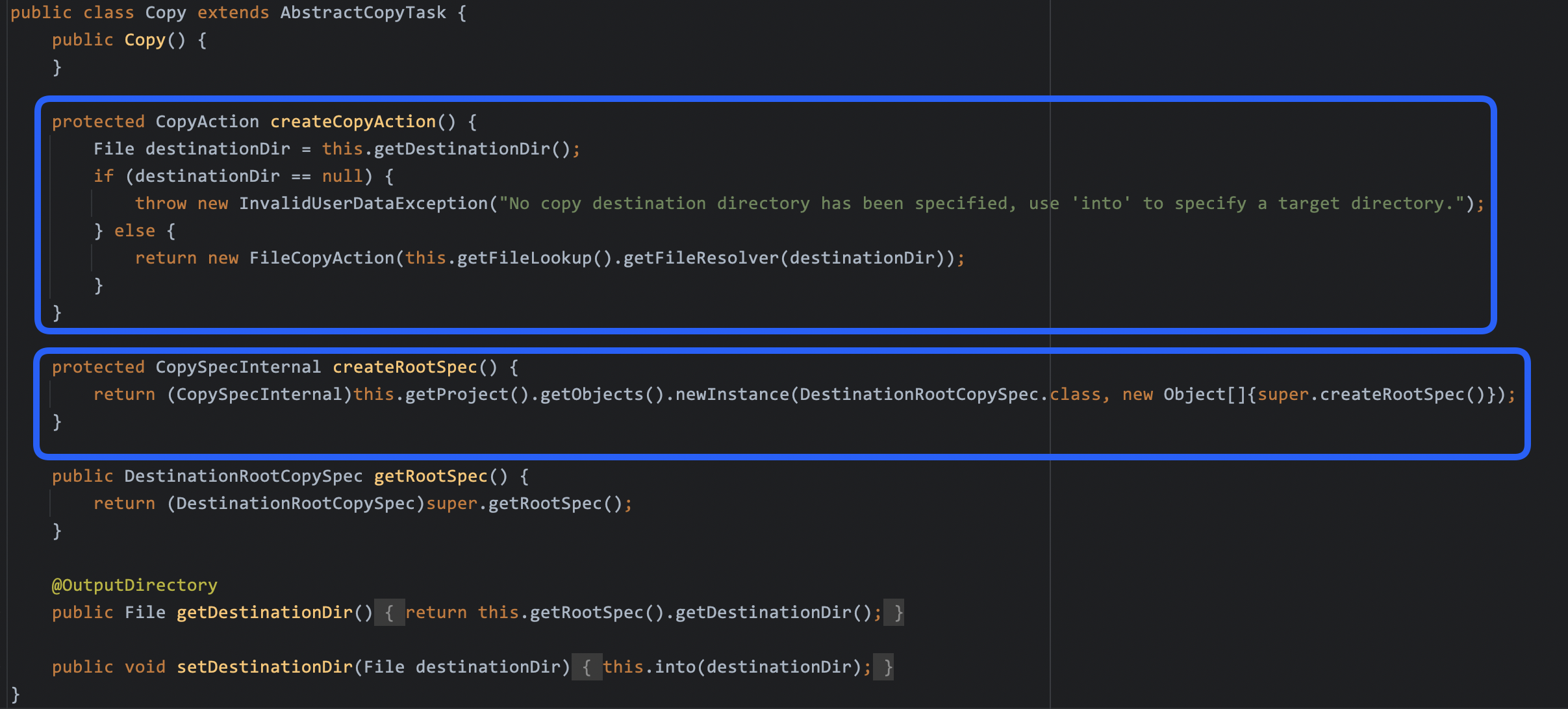 - 여기서 생성되는 CopyAction은 실제로는 Copy 클래스에 있는 메서드가 생성하는 FileCopyAction클래스가 됩니다.