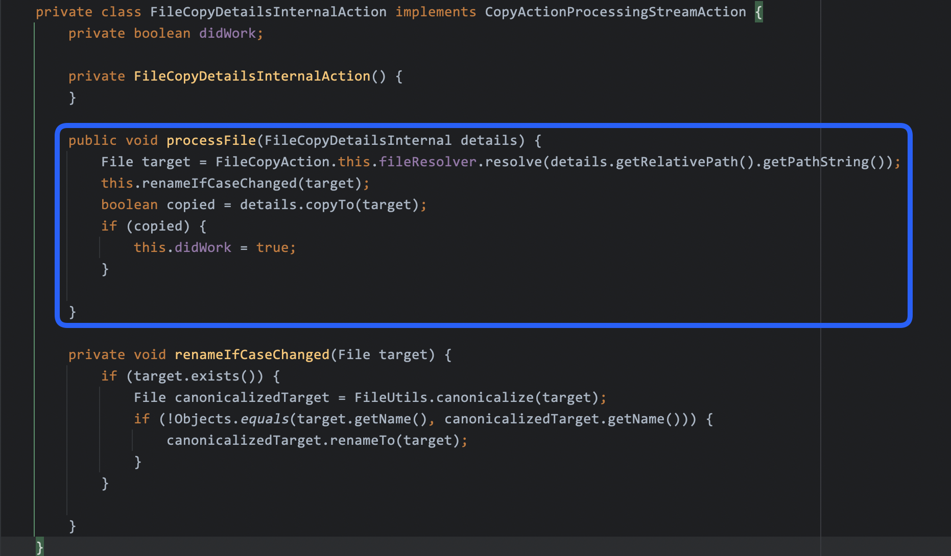- 아래 클래스의 processFile 메서드가 호출되고 이때 파일이 복사됩니다.