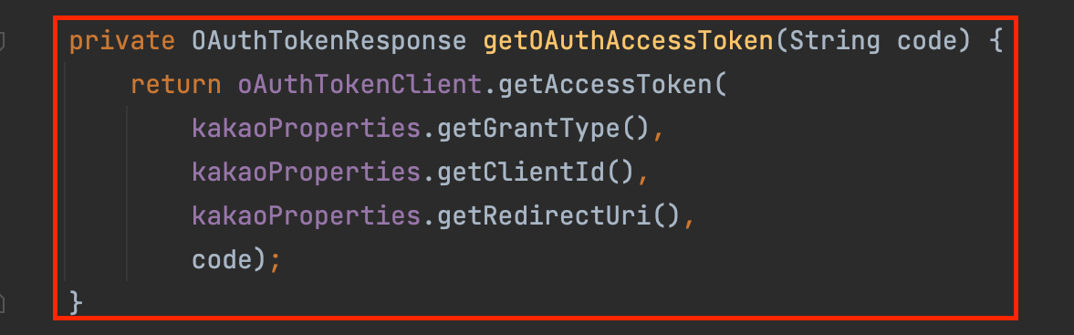 - getOAuthAccessToken: 유저의 정보를 요청할때 필요한 access token을 요청하는 메서드입니다.